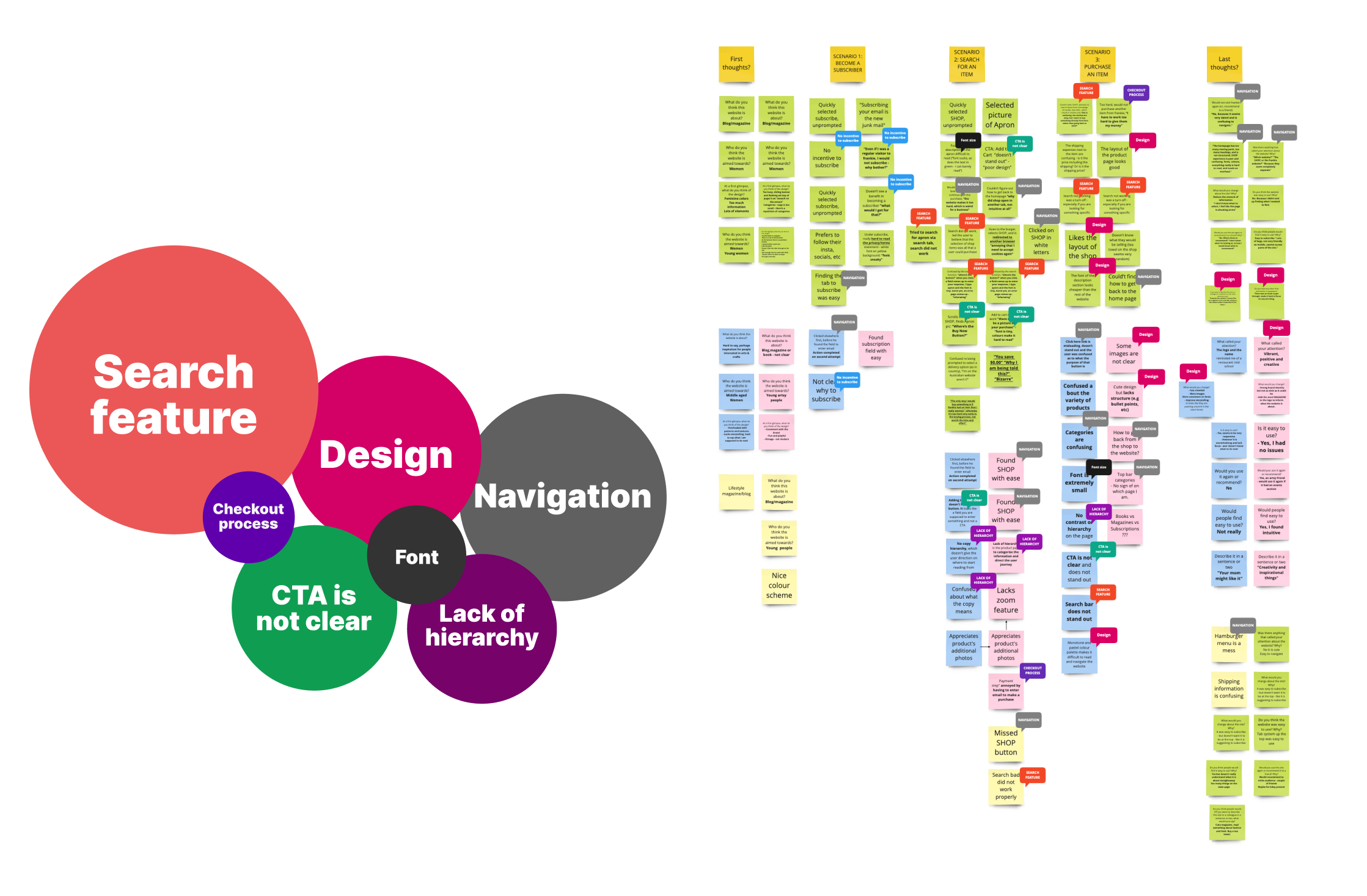The first round of user testing aimed to identify users’ behaviours and main pain points when using Frankies’ website and shop