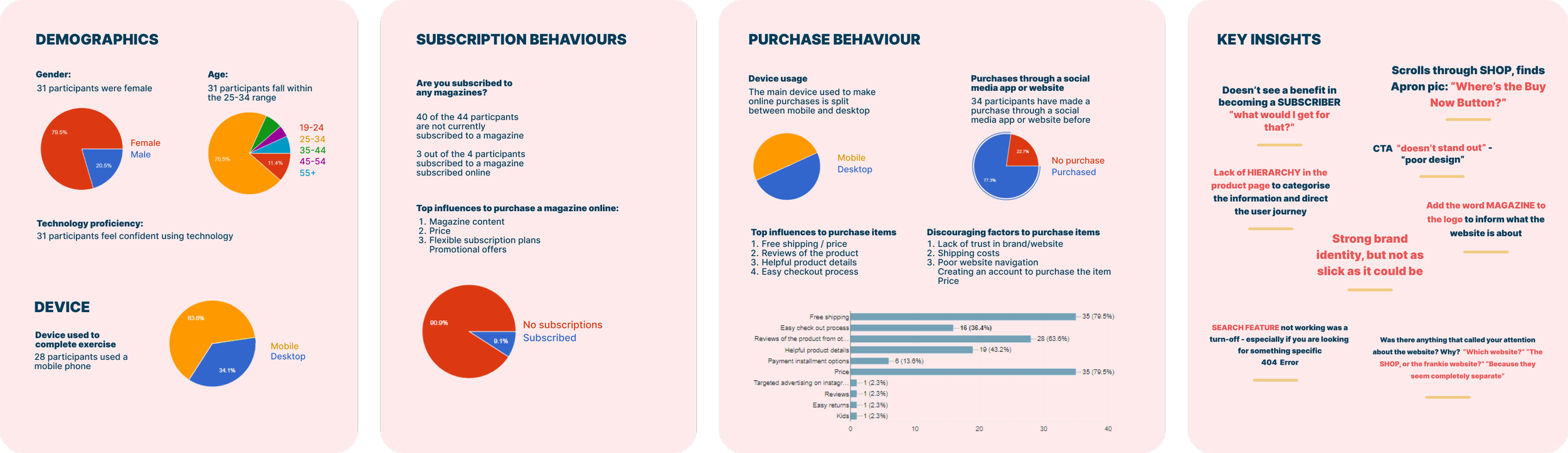 • 1:1 Frankie Shop user testing x 9 (3 users and 6 non users)