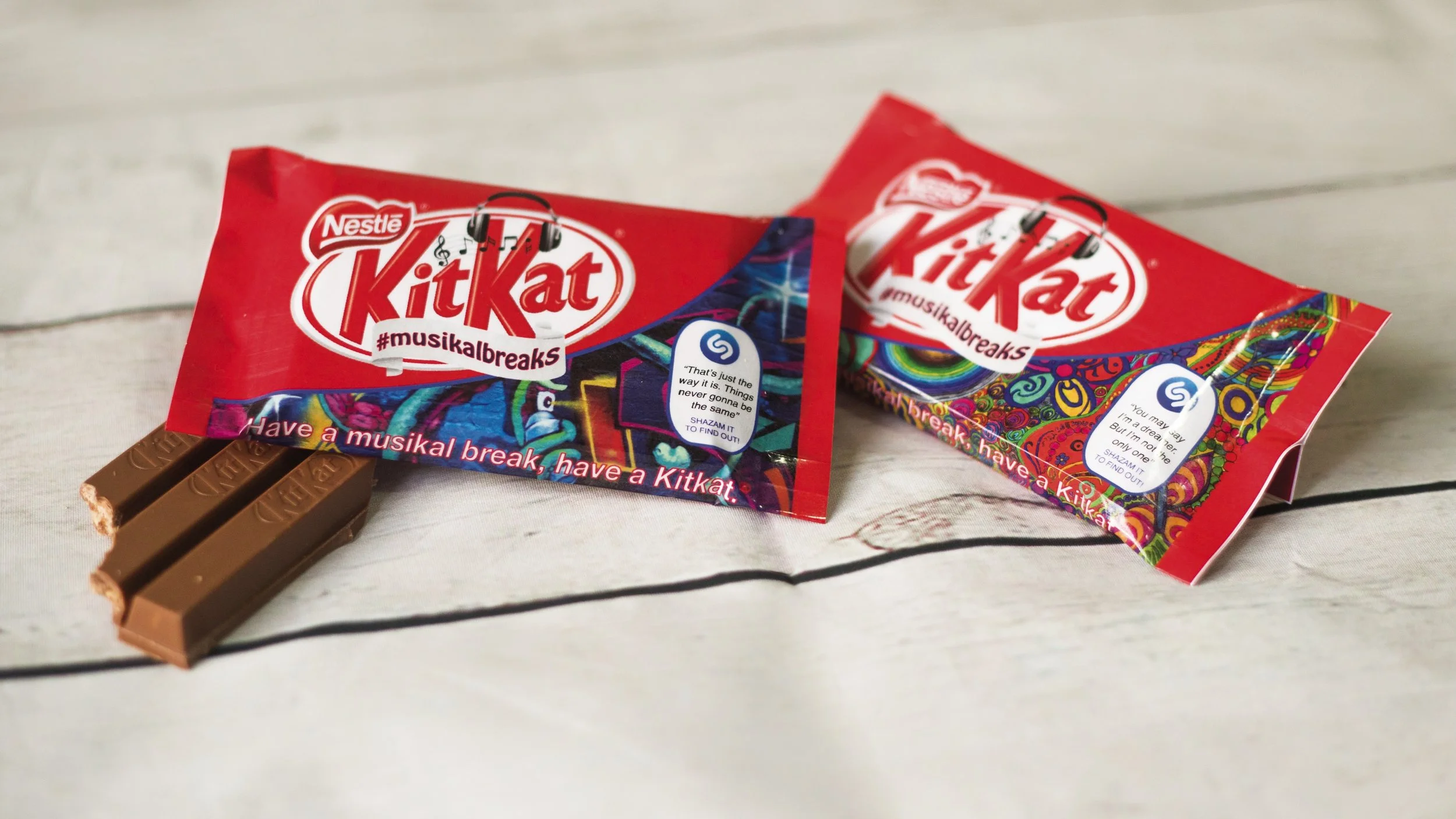 After purchasing a KitKat, consumers can scan the Shazam logo on the front of the pack to enjoy their break while listening to music. As a second step, they are encouraged to share the experience using the hashtag #musikalbreaks.